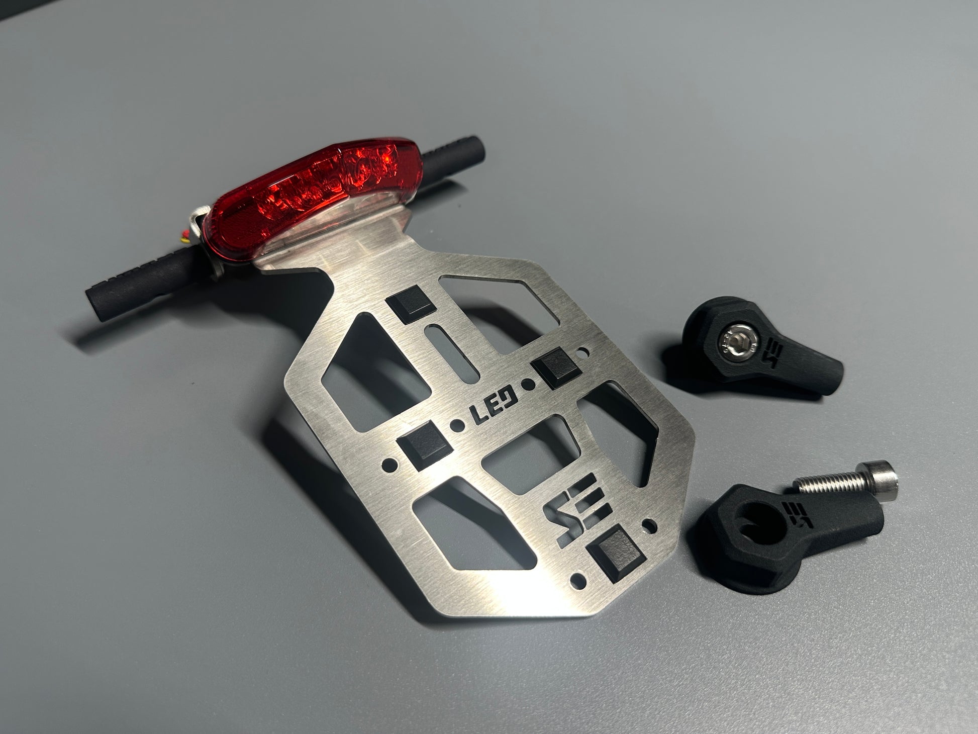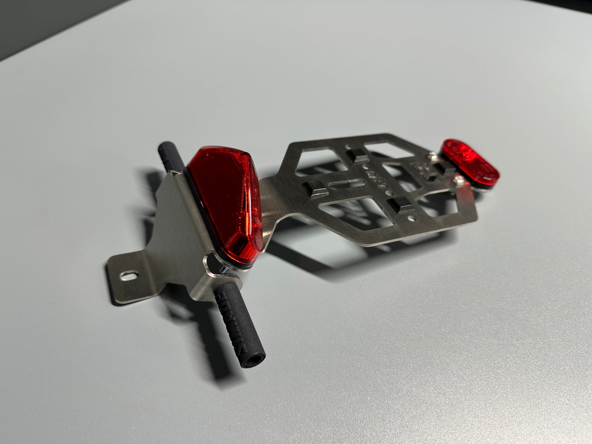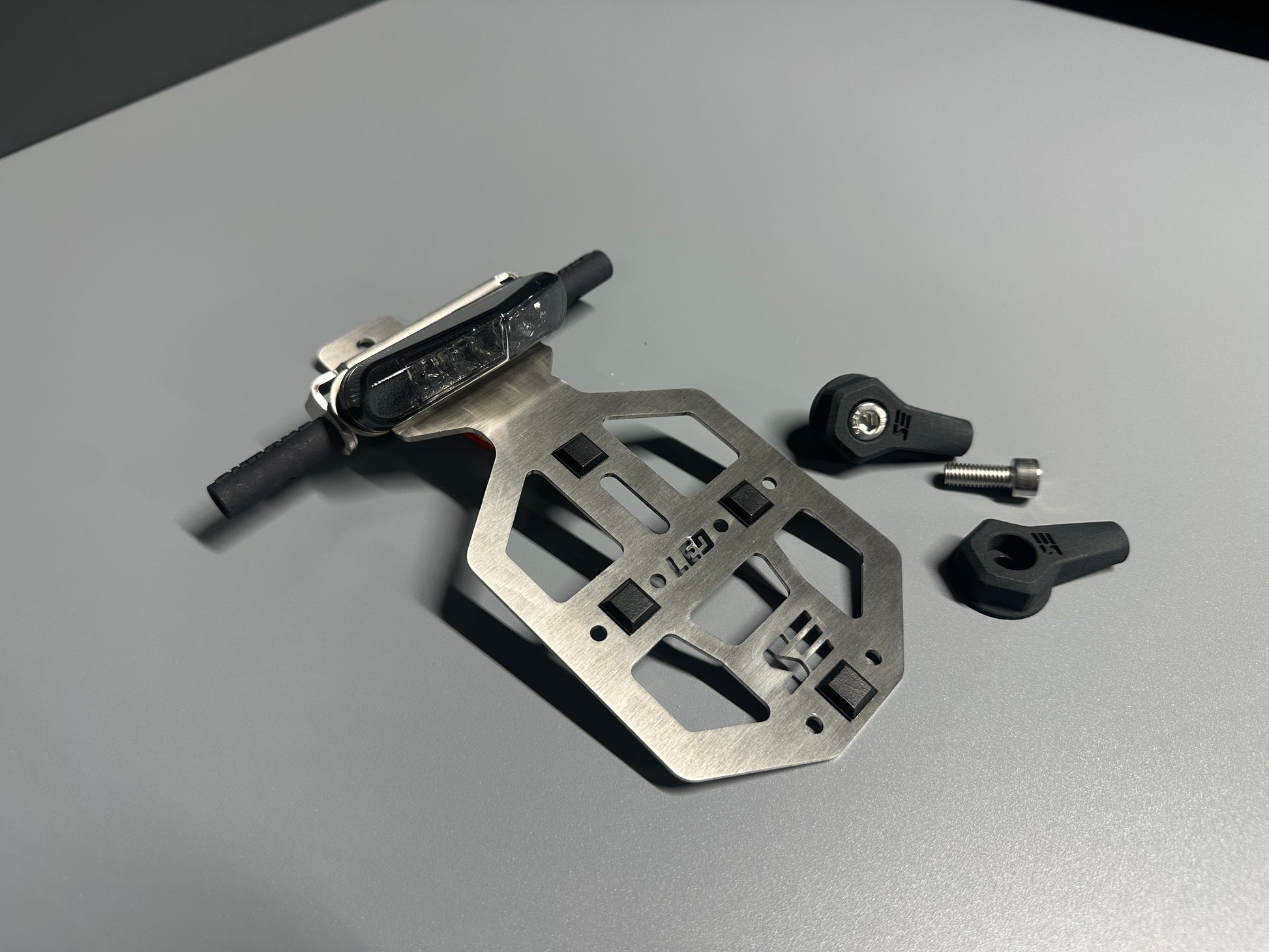 Ideal für den Umbau auf LED Rücklicht und Blinker, diese können einfach in die schwarzen bereits montierten Blinkerhalter mit M8 Innengewinde montiert werden. Alle Kennzeichenvariationen lassen sich einfach mit den mitgelieferten Schrauben befestigen.